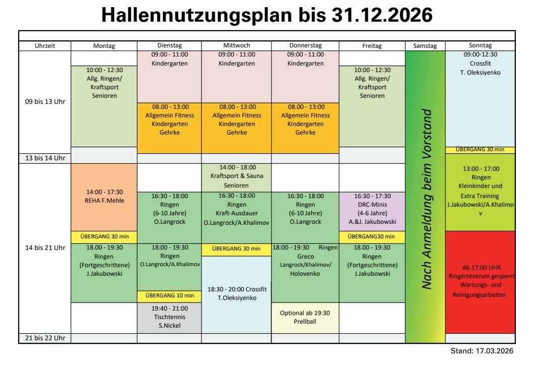 Ab sofort findet das Ringertraining immer dienstags und donnerstags von 16:30 bis 18:00 Uhr statt.